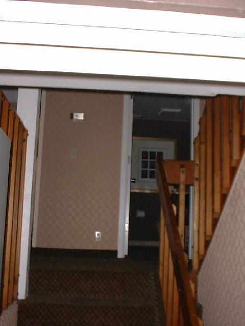 Standing in the entry door - a few steps up from the garage, through the door and then a few steps up into the first level. Dead ahead is the powder room on the first level.