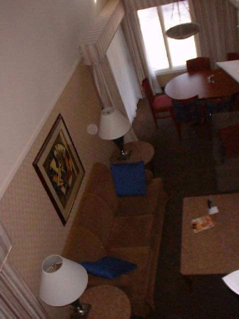 Looking at the living room from the third level loft